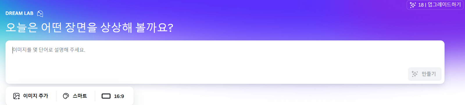 처음이니까 Dream Lab이라는 기능을 이용해서 고품질의 이미지를 쉽게 만들어보려고 해요.