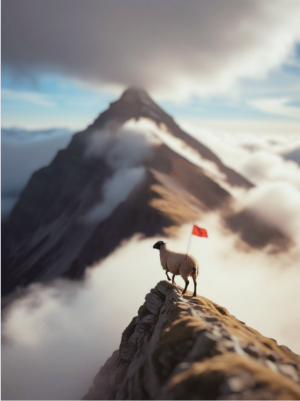 첫번째 이미지가 "산꼭대기를 올라가는 양"을 잘 보여주고 있네요.