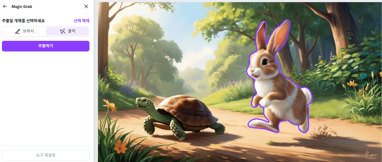 추출하고자 하는 토끼를 클릭하고 보라색으로 활성화된 "추출하기" 버튼을 클릭합니다.