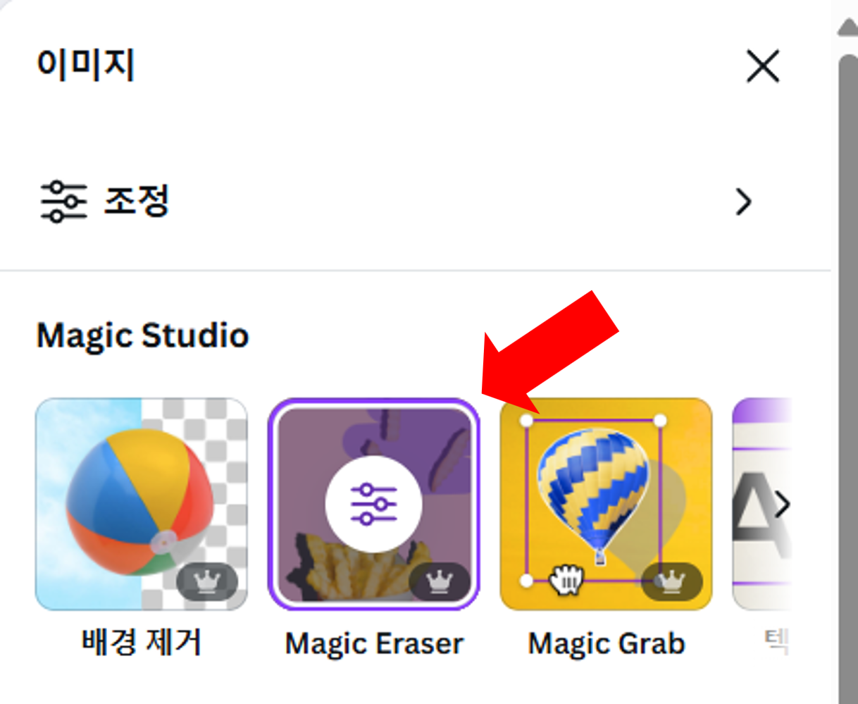 왼쪽에 나오는 "Magic Eraser"를 클릭해줍니다.