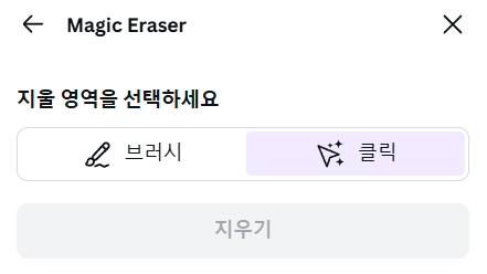 편집할 영역은 "브러시" 또는 "클릭"을 선택하고