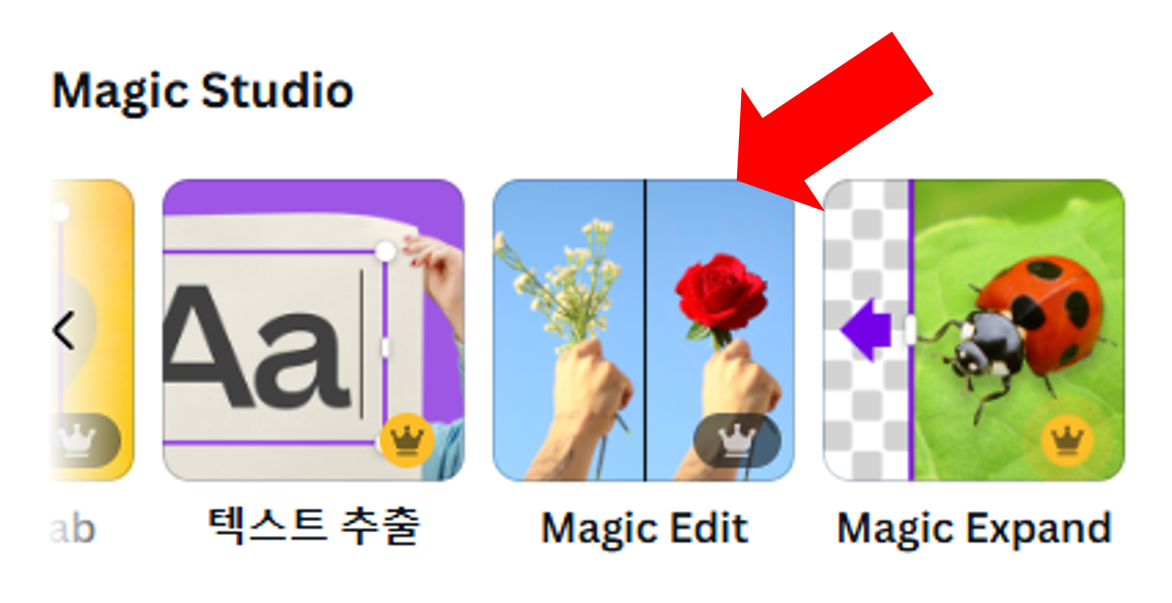 왼쪽의 Magic Studio 선택 화면에서 Magic Edit을 클릭해줍니다.
