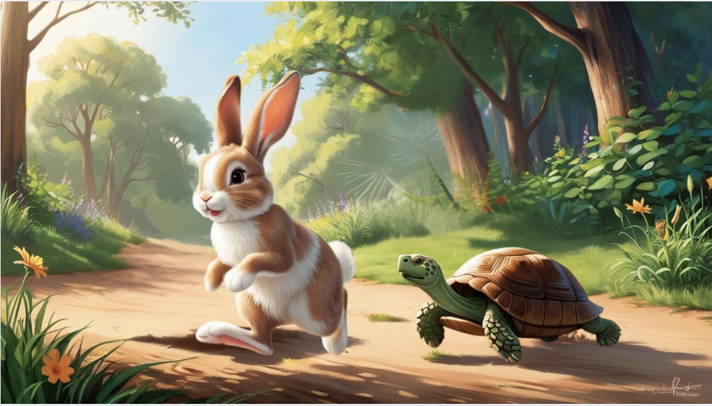 토끼가 거북이보다 앞선 이미지로 수정되었어요!