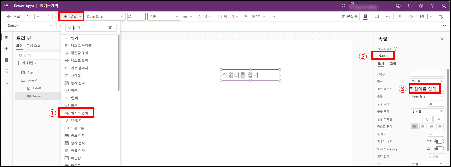 ③ 힌트 텍스트에 " 직원 이름 입력" 으로 설정