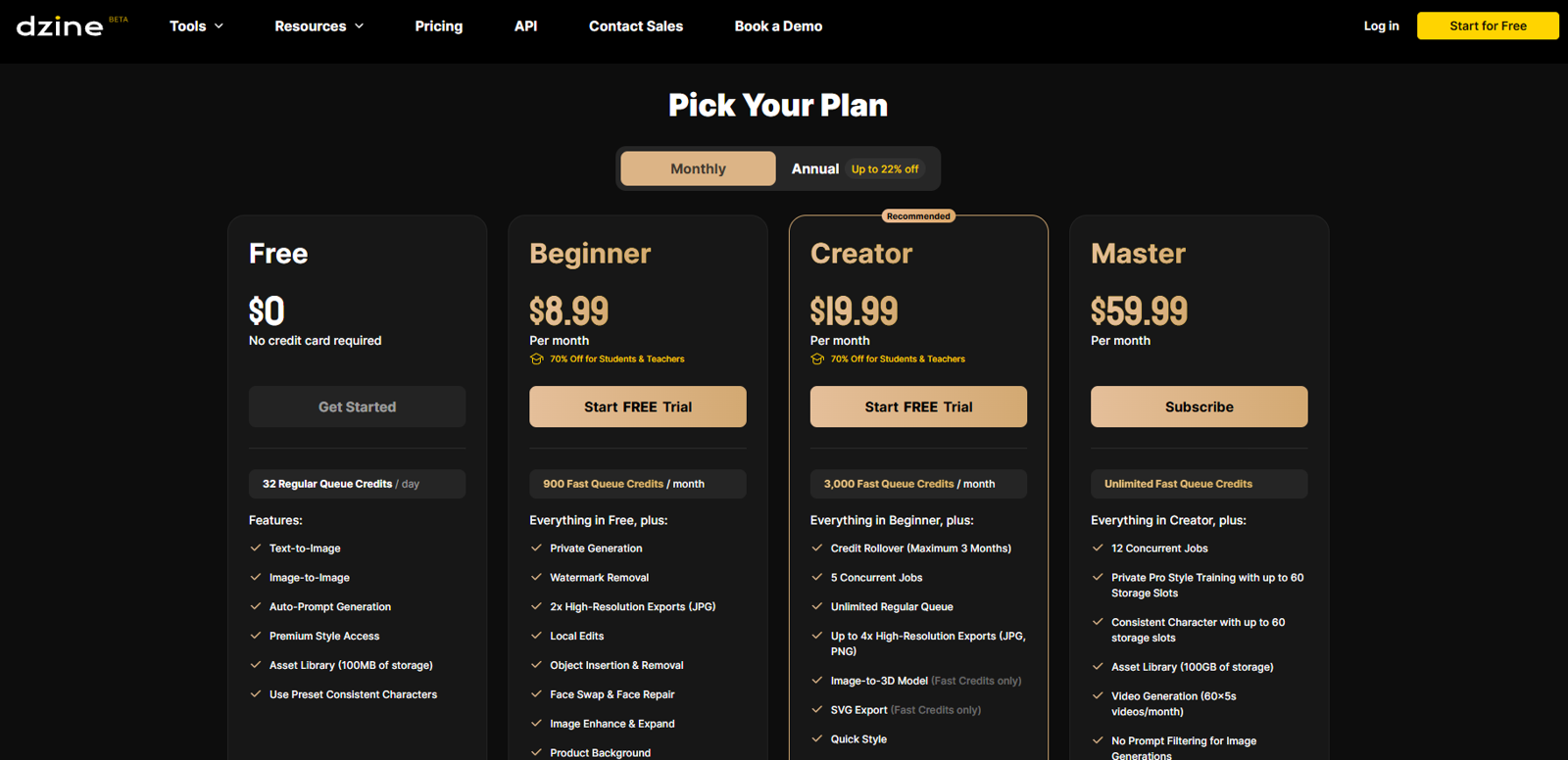 dzine에서는 3번째 plan인 Creator plan을 추천해주네요.