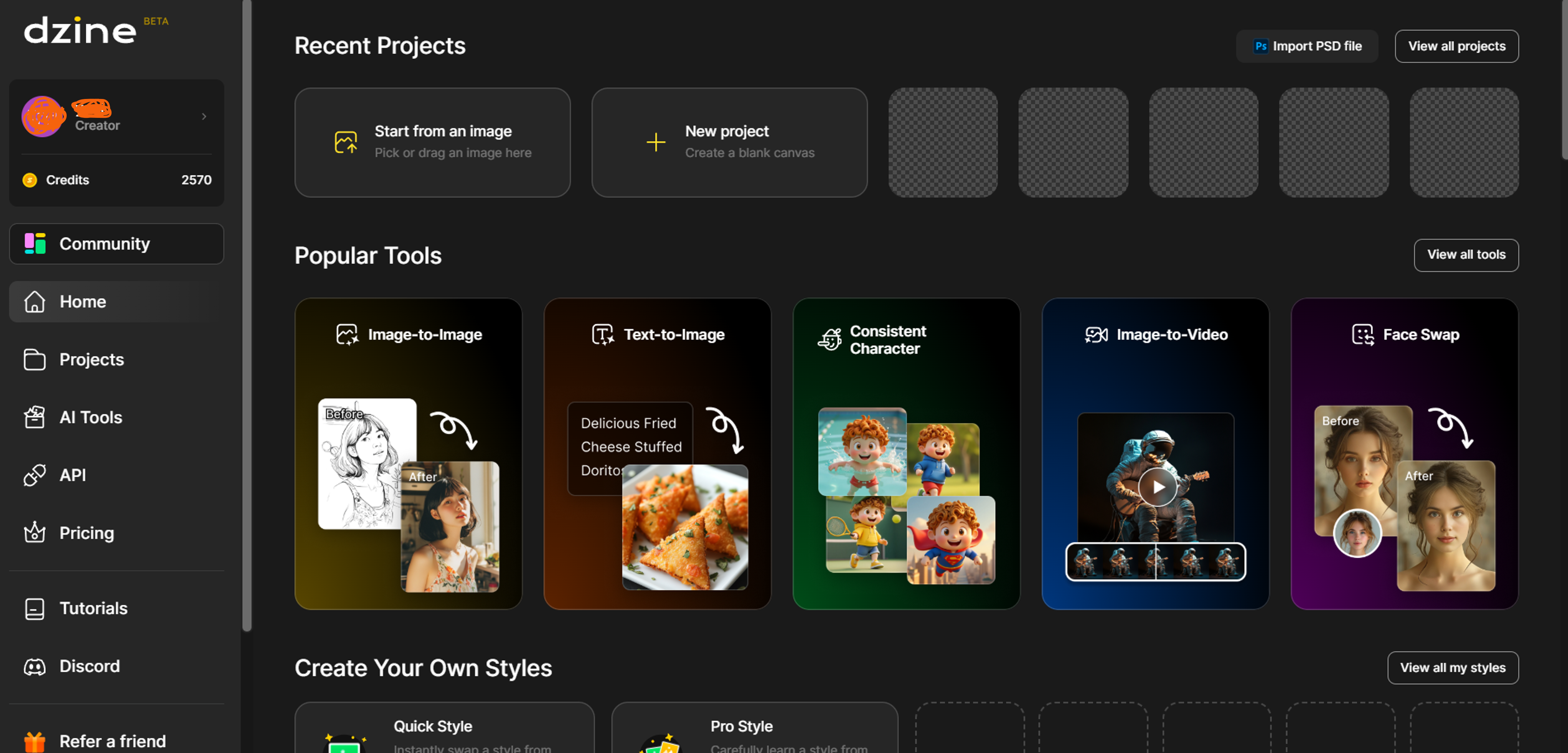 dzine은 텍스트를 입력하면 이미지와 영상을 생성해주고,