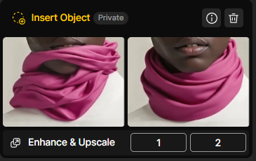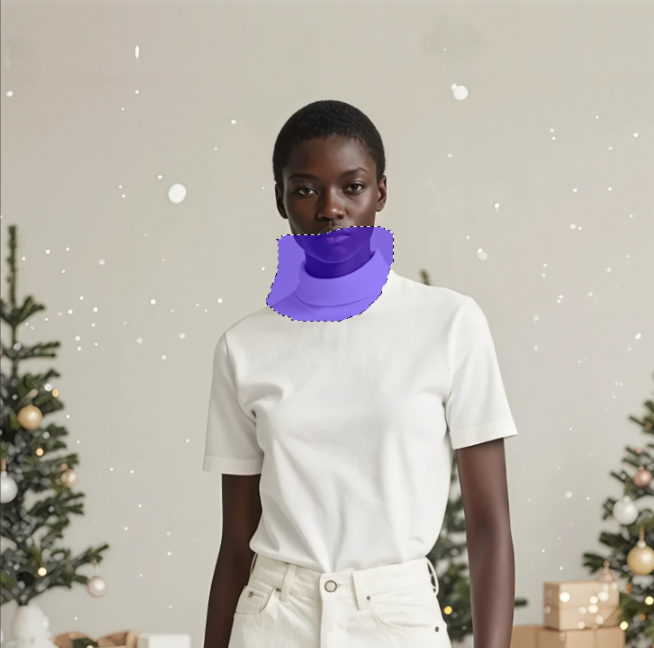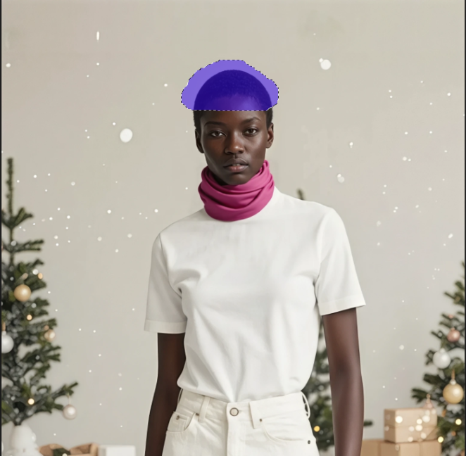 저는 모델의 목 부분에 핑크색 실크 스카프를 착용시킨 이미지를 생성해볼게요