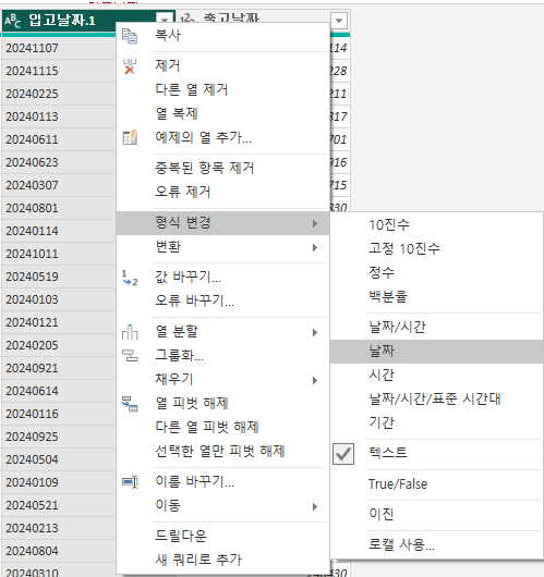 오늘은 A회사의 숫자 데이터를 Power Query를 통해 날짜 데이터로 변환해보도록 하겠습니다.