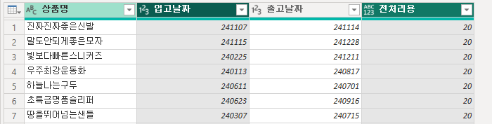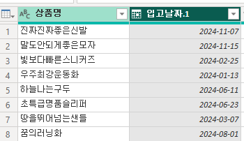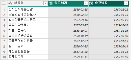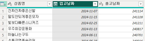 열 이름을 입고날짜로 바꿔줍니다. 더블클릭으로 선택 후 바꾸시면 됩니다.