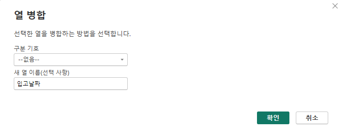 새 열의 이름은 그대로 입고날짜로 만들어 줍니다.