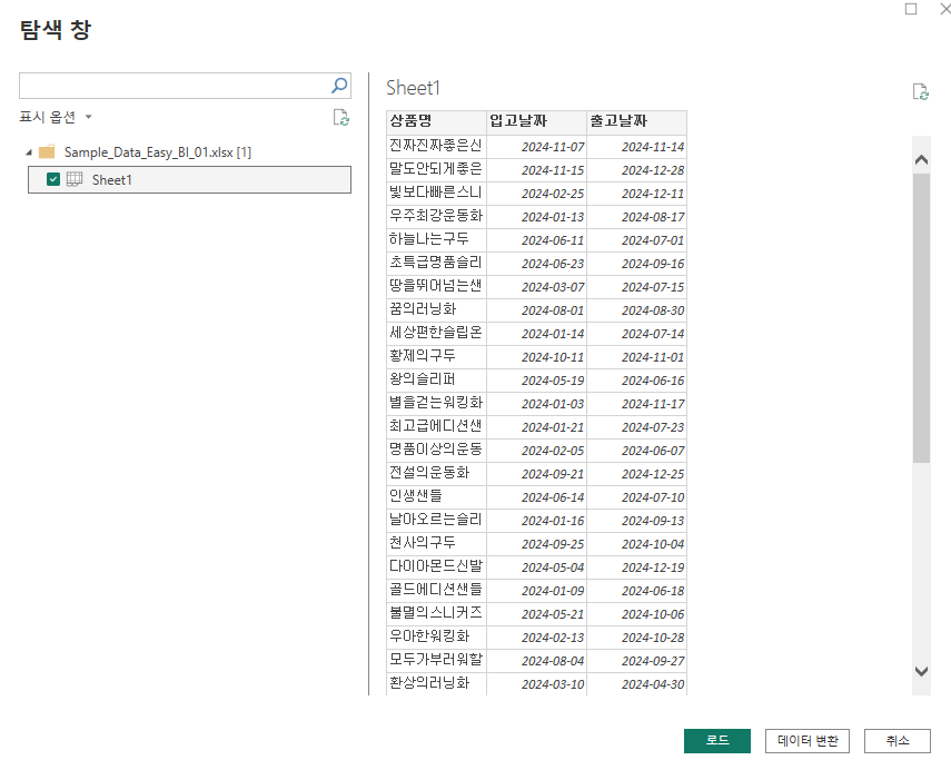 2의 경우, 엑셀 내에서 전처리를 하고 Power BI 데이터로 전처리 완료된 Excel을 사용합니다.