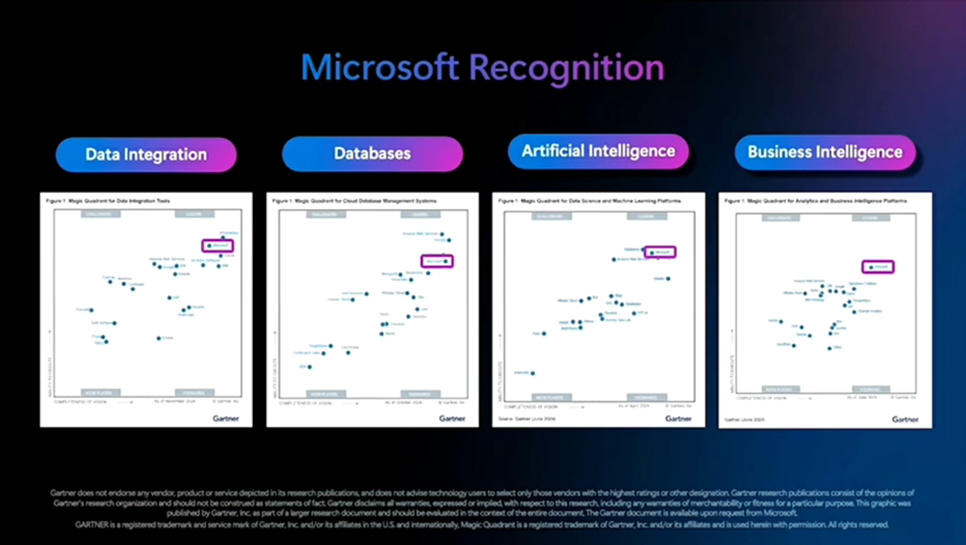 - Microsoft는 데이터 & AI 분야의 4개의 Gartner Magic Quadrant 모두에서 리더십 확보