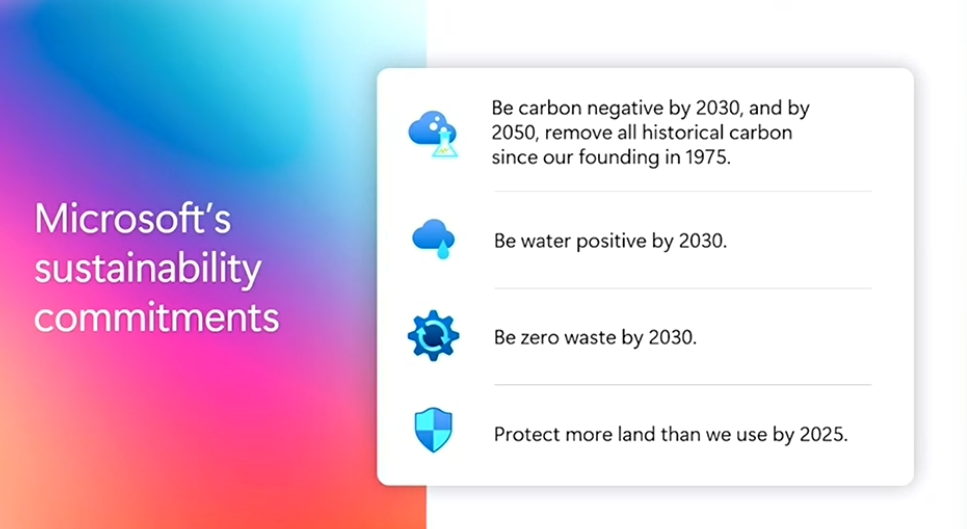 - Microsoft는 34GW 이상의 재생에너지 확보 → 2025년까지 100% 탄소 제로 달성 목표