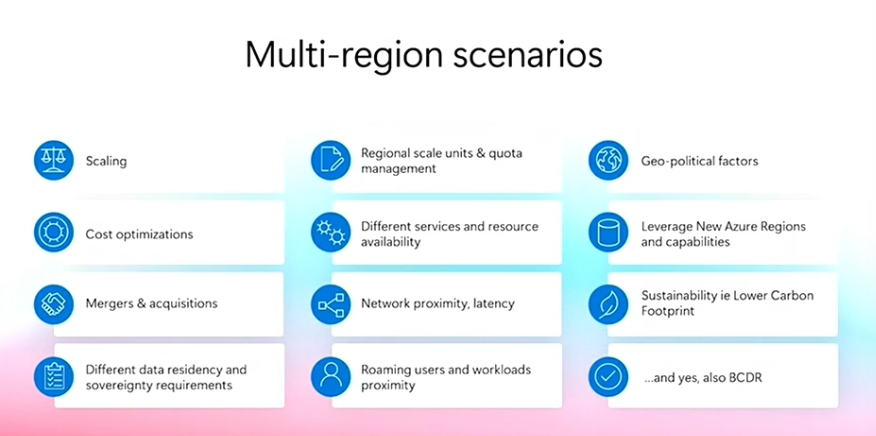 멀티 리전 전략은 운영 확장, 고객의 데이터 거주지 요건 충족 등 다양한 시나리오에서 유용합니다.