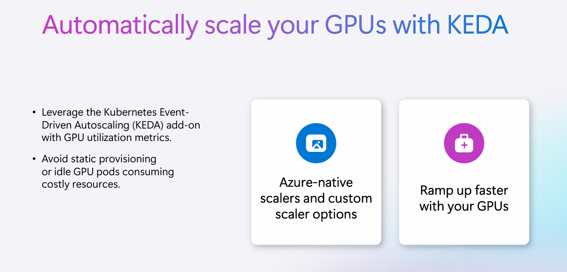- KEDA (Kubernetes Event Driven Autoscaler)는 GPU 메트릭 기반으로 확장 가능