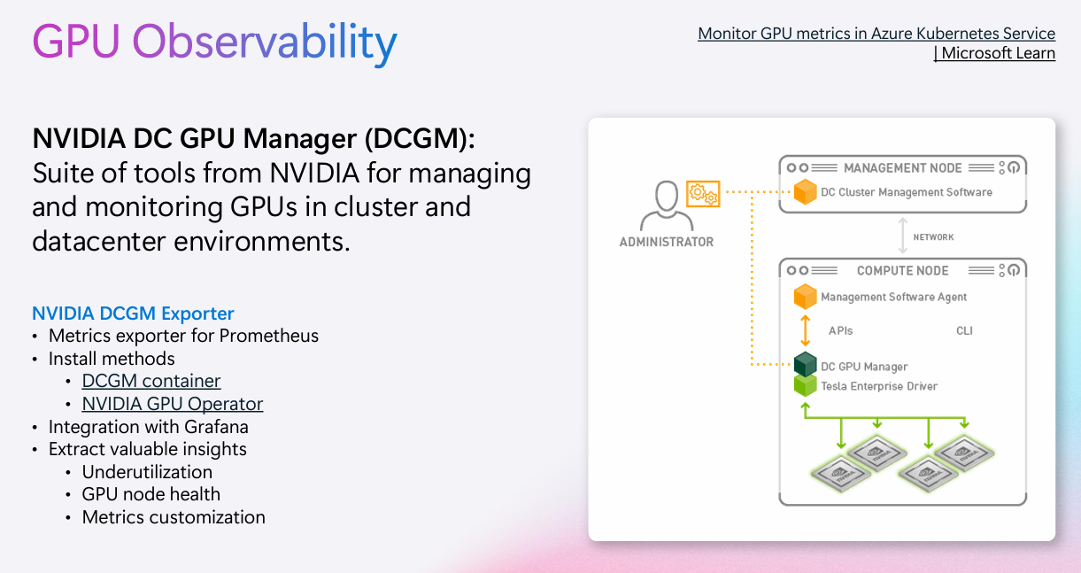 Azure는 다음을 통해 GPU 관측 자동화 인프라를 제공합니다.