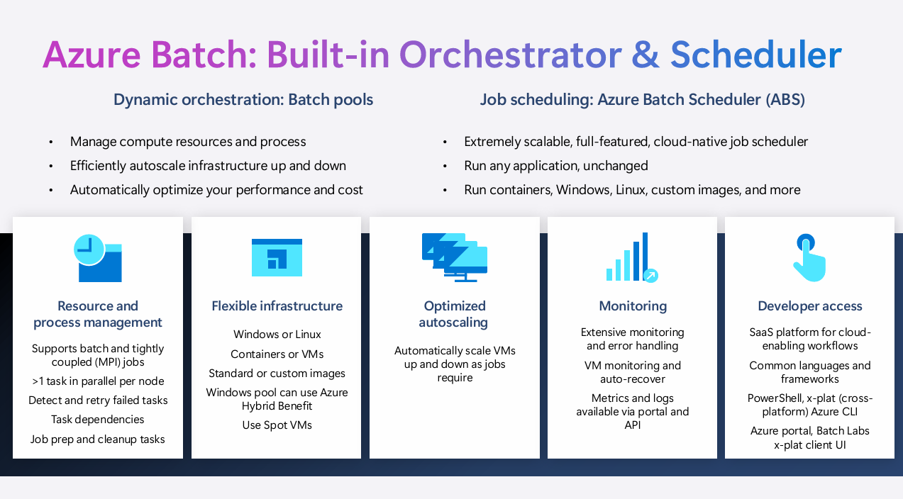 | 클라우드 네이티브 | Azure Batch | 단순·자동화, SaaS 형태 |
