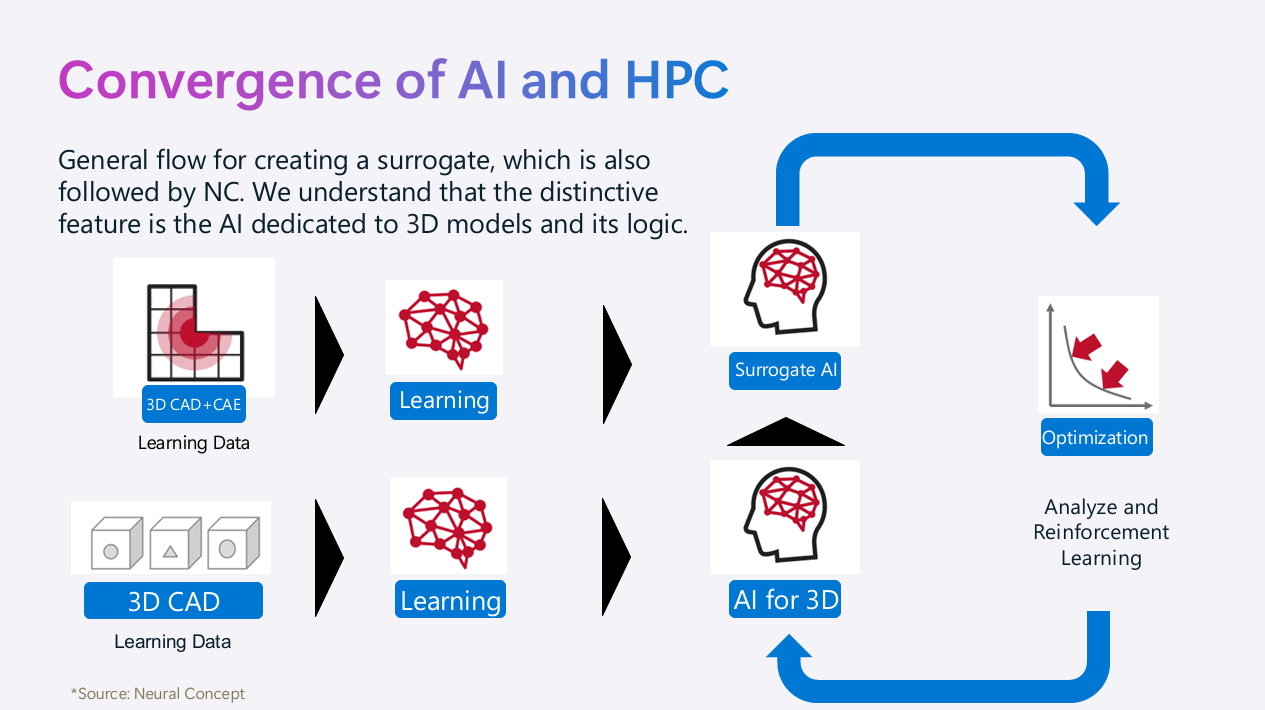AI가 생성한 데이터를 HPC 환경에서 분석·시뮬레이션해 제품 개발과 성능 개선에 활용 - HPC → AI