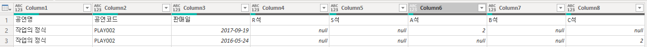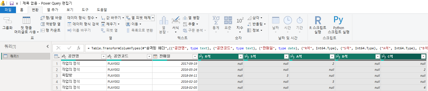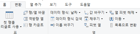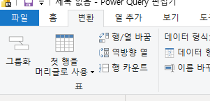 변환 탭에서 첫 행을 머릿글로 사용을 누릅니다.