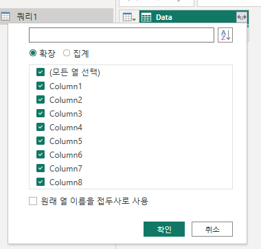 확인을 누르면 결합 / 로드 / 데이터 변환 중 하나를 고르셔야 합니다.