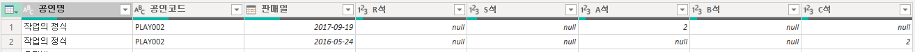 좌석 등급 내용이 특성 열의 값으로, 각 티켓의 수량이 값 열로 정리되었습니다.