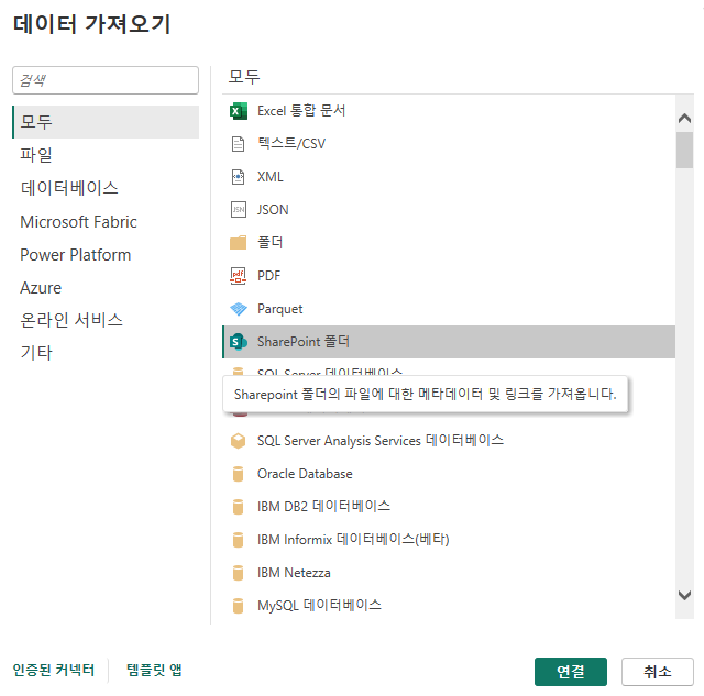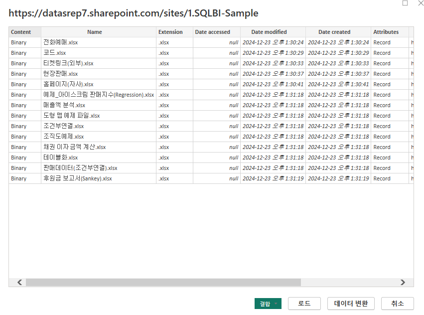 오늘은 Power BI로 Sharepoint 폴더 데이터를 가져오는 방법을 안내드리겠습니다.